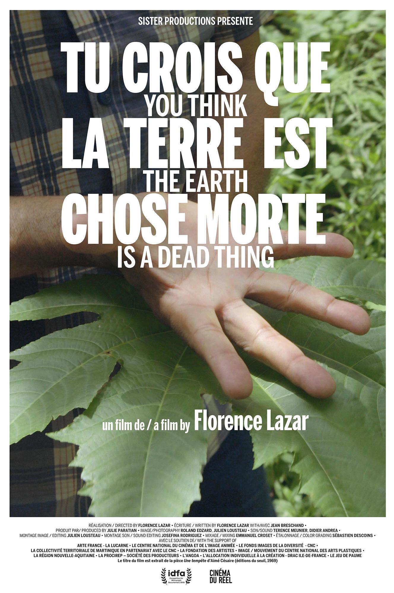 Martinique, with all its appearance of a terrestrial paradise, is in fact an aberration in the 21st century, a residue of colonialism, the present situation of which reminds us, if that was still needed, of its indelible effect on the territories and the populations that it enslaved. Florence Lazar’s film starts from the ascertainment that the island, still under French tutelage, is the laboratory of agri-food industries which, for lack of some strict regulations and a responsible political class, dump their pesticides in the local waters and soil, boosting their production levels at the expense of the people’s health. The film focuses on the locals' resistance strategies, from the classic mass demonstration to attempts to preserve and pass on ancestral knowledge regarding the healing properties of plants. In each shot vibrates a luxurious nature which preserves its splendour in spite of repeated attacks from humans – its resilience, that the subjects often mention, makes itself felt to both those in front of the camera and behind it. The frontiers between farmer, shaman, and scientist become blurred, and Lazar and her team observe this dilation of traditional classifications without expressing any doubts or value judgements. The filmmakers’ refusal to verbally intervene in any way during the shooting, even though it might seem disorienting at first, gives the people a welcome space for their discourses, all the more since they otherwise rarely have the chance to make themselves heard. (Liri Alienor Chapelan)