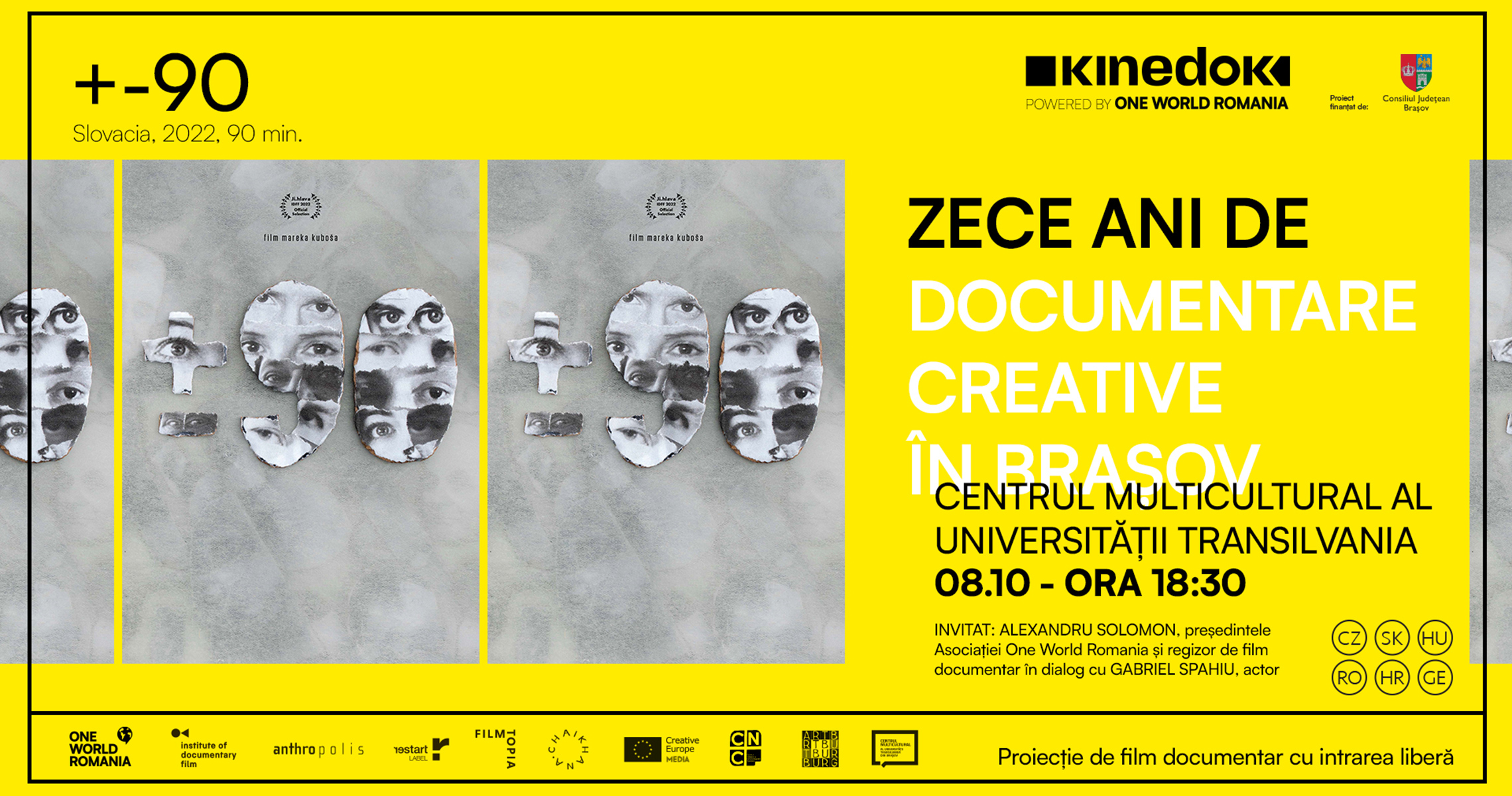 This year, KineDok Brașov will begin on October 8 at 6:30 PM at the Multicultural Center of Transilvania University with a screening of the documentary +-90 (Slovakia, 2022, 90 min.), which won awards at One World Slovakia and the Ji.hlava International Documentary Film Festival in 2022.