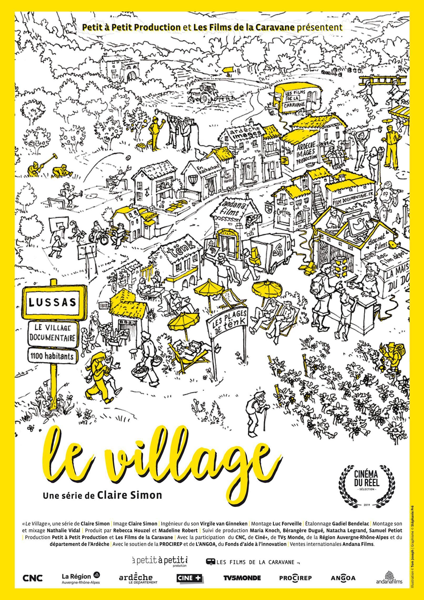 Lussas ar fi rămas doar unul dintre numeroasele sate pitorești ale Franței, dacă Jean-Marie Barbe, originar din localitate, nu ar fi avut ideea de a-l transforma într-un centru de reflecție al documentariștilor din întreaga țară. În timp, avea să devină tot mai important pentru cineaști și pentru cinefili, deopotrivă, atrăgând mii de spectatori în timpul festivalului anual care se desfășoară aici. Mai mult, echipa din jurul lui a reușit, recent, câteva performanțe fantastice, printre care cele mai importante sunt crearea și dezvoltarea unei platforme online (Tënk), ai cărei abonați pot viziona zilnic câte un documentar de autor, și construirea unei școli de film moderne, avându-i ca profesori pe unii dintre cei mai incitanți cineaști ai momentului. Procesul acesta, în egală măsură dificil de finalizat și fascinant de privit, este subiectul principal al seriei de zece episoade pe care cineasta Claire Simon îl dedică fenomenului Lussas. Prin intermediul său, suntem invitați să intrăm în intimitatea echipei coordonate de Barbe, să asistăm la succesele de etapă, dar și la deziluziile și eșecurile traversate în demersul lor temerar. Dacă ne-am fi imaginat că în Franța sunt mai ușor de înfăptuit proiectele îndrăznețe, precum acesta, „Satul” ne readuce la o realitate nu foarte diferită de cea în care supraviețuiesc organizațiile mici în România. (de Andrei Rus)
