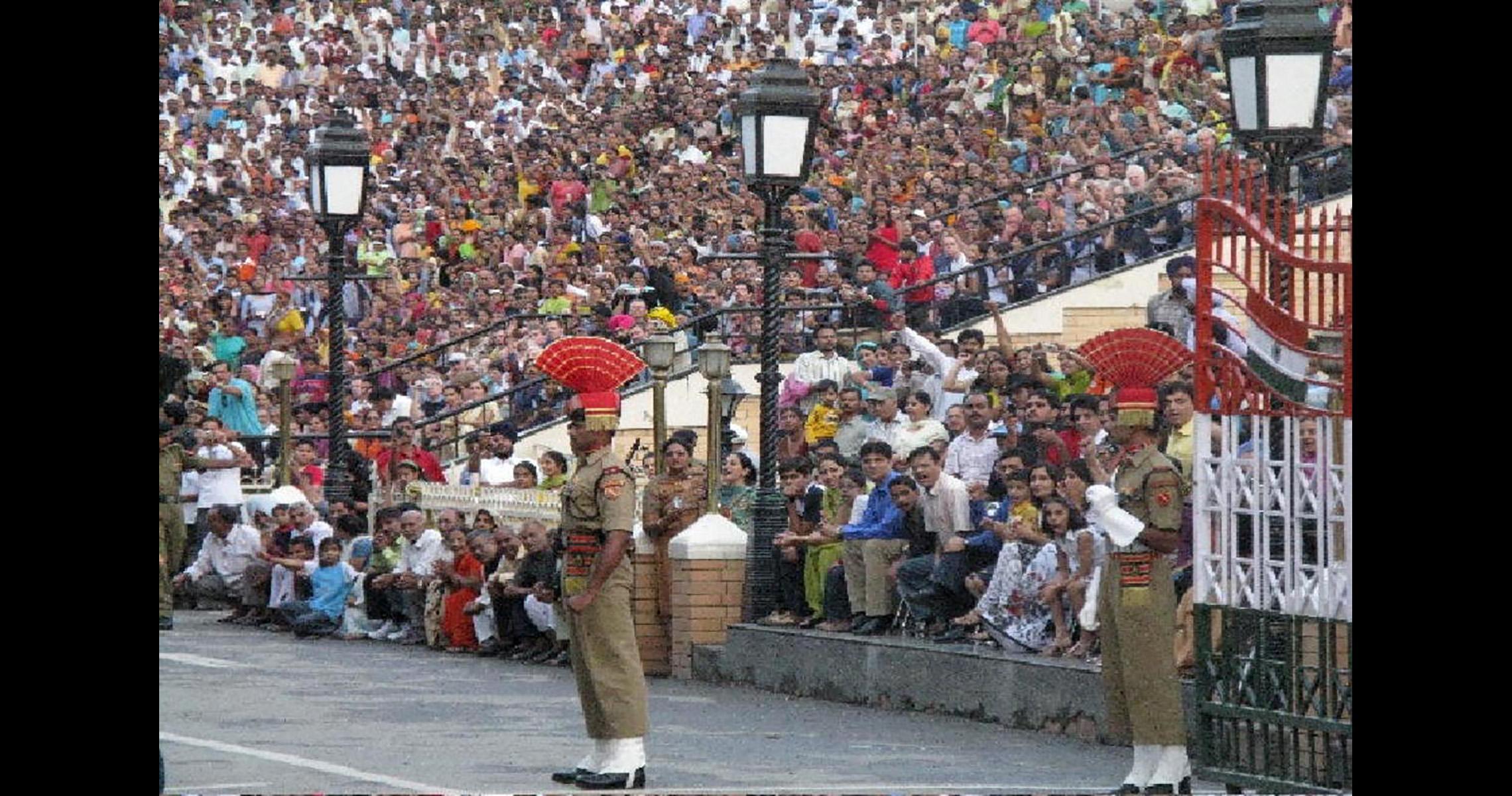 In fiecare seara, singurul punct de trecere a frontierei dintre India si Pakistan pe o raza de 1000 de km devine scena unui spectacol extraordinar. Mii de oameni se aduna sa vada inchiderea ritualica a granitei, iar dupa aceasta, masele se apropie pe cat posibil de porti pentru a isi saluta vecinii cu care, in mod traditional, se afla in conflict. Acest “festival” devine, pe de-o parte, un turnir intre inamici, dar pe de alta parte, este singurul element de legatura. Oamenii de o parte si de cealalta a frontierei se scruteaza cu teama si fascinatie. Trei copii care vand DVD-uri pe langa granita privesc lucrurile cu niste ochi mai limpezi.