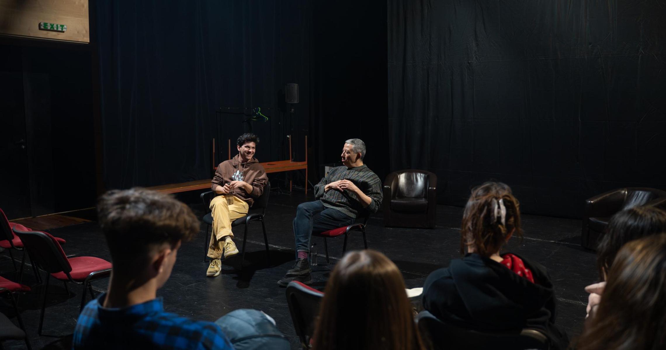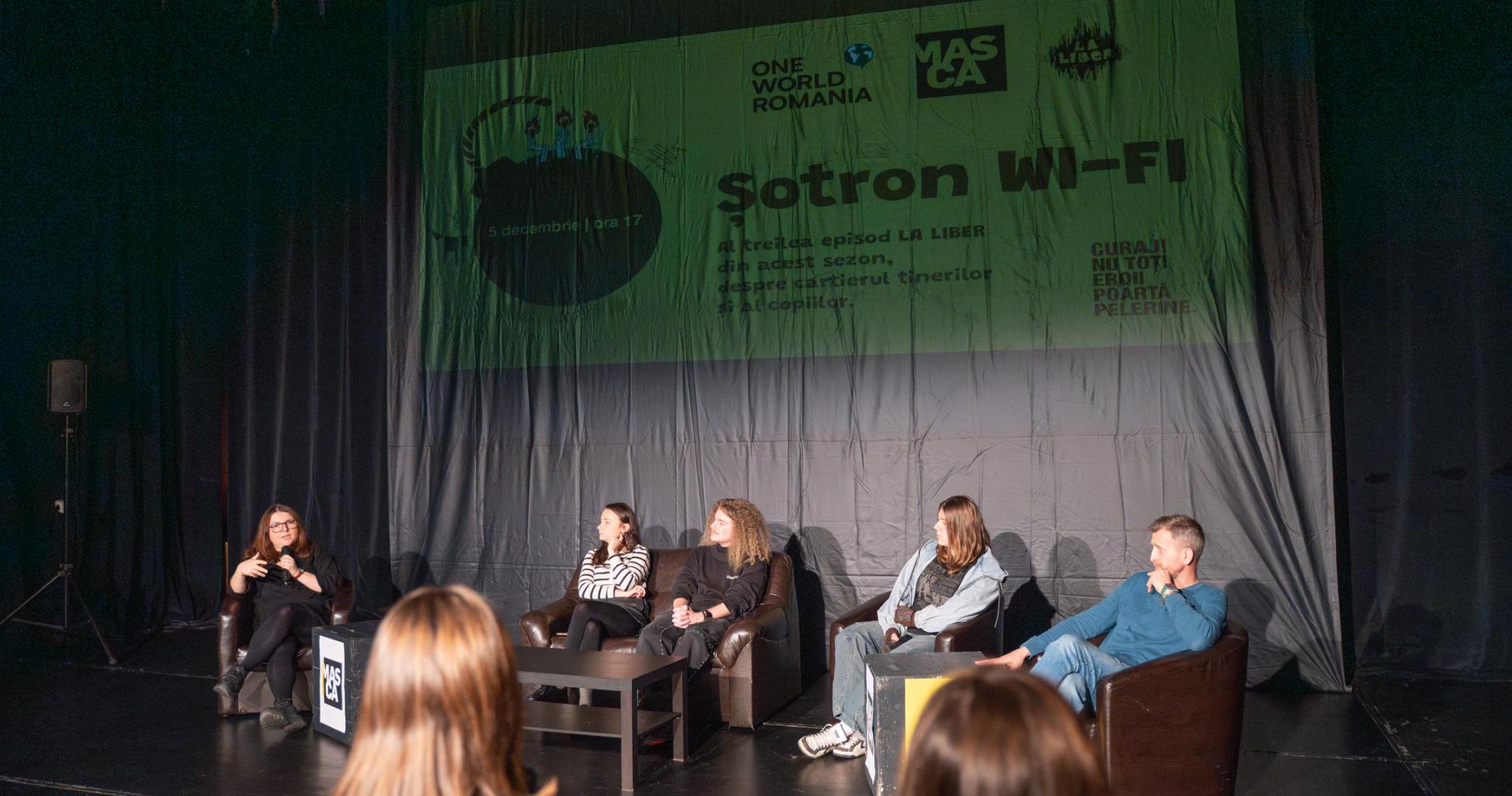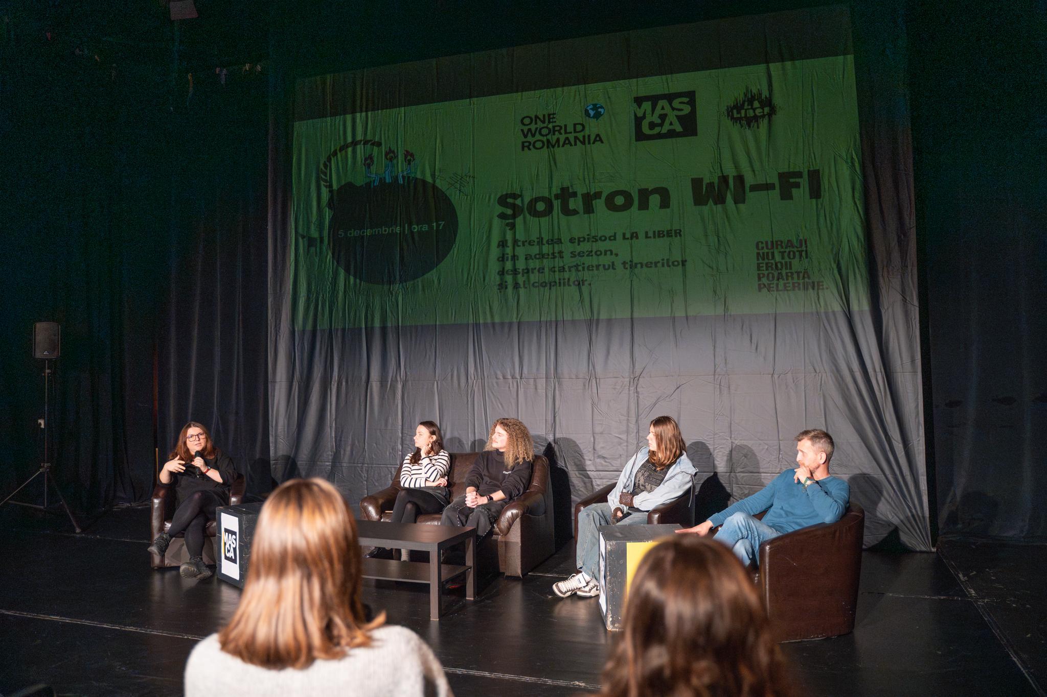 Discuție cu Mara Căruțașu și Valentin Mihalache, actori ai Teatrului Masca; Andreea Lăcătuș, directoarea festivalului One World Romania; Alexandra Constantin, o tânără din teatru și din cartier; Aris Bogdan Bănuțoiu, student la teatrologie și fost președinte al Consiliului Liceenilor din București (co-organizator: Teatrul Masca)